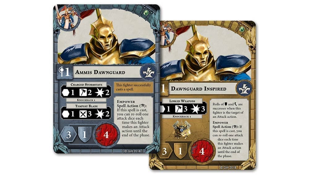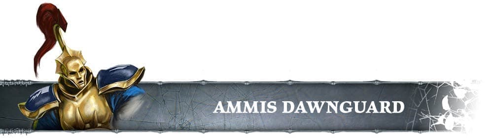 Аммис Страж Рассвета (Ammis Dawnguard) – не только могучая воительница, но и искусный маг первого уровня, способная улучшать собственное вооружение. Это делает её надёжным и достаточно гибким в тактическом плане бойцом, в то время как её способность отталкивать неприятеля прекрасно показывает себя в Nightvault, отличающемся большим количеством смертоносных (lethal) гексов.