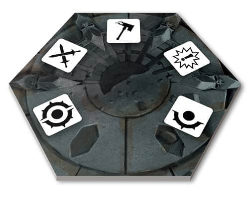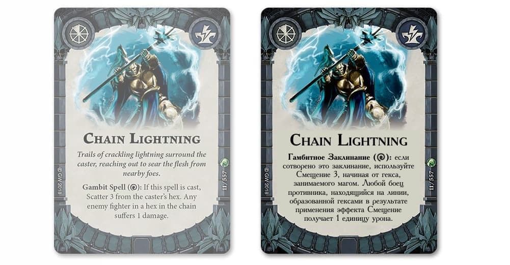 После того, как вы поместите шаблон над моделью бойца, использующего заклинание, бросьте количество кубиков, равное цифре, указанной после слова «Смещение» (Scatter) на карте, которую вы разыгрываете. Затем используйте полученные значения кубиков для того чтобы построить цепь.