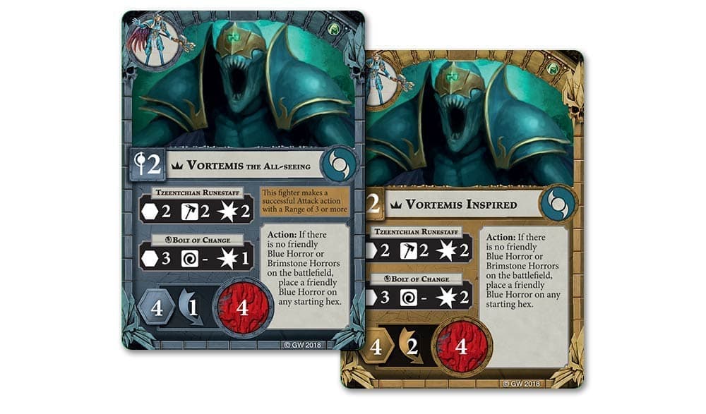 Вортемис Всевидящий – Магистр Тзинча и лидер Глаз Девяти. В игре он является чрезвычайно разносторонним бойцом, способным нанести весьма неплохой урон в ближнем бою, разорвать врагов на части дальнобойными магическими атаками (попутно получив от этого Вдохновение (Inspiration)), а ещё и призвать на поле боя Голубых Ужасов (Blue Horrors). Однако будьте осторожны! Пусть Вортемис и имеет солидные 4 раны и 1 куб на уклонение (2 после получения Вдохновения), вам стоит позаботиться о том, чтобы держать его подальше от бойцов противника, заточенных на убийство лидеров.