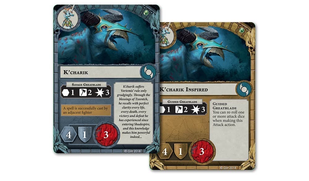 К’Чарик – ваша основная ударная сила. Маневренный Тзаангор может похвастаться мощной атакой в ближнем бою (3 единицы урона позволят выбить большинство врагов одним ударом), но 3 Раны делают его довольно хрупким, так что используйте его, чтобы заработать несколько Очков Славы за убийства прежде, чем его самого выведут из строя.