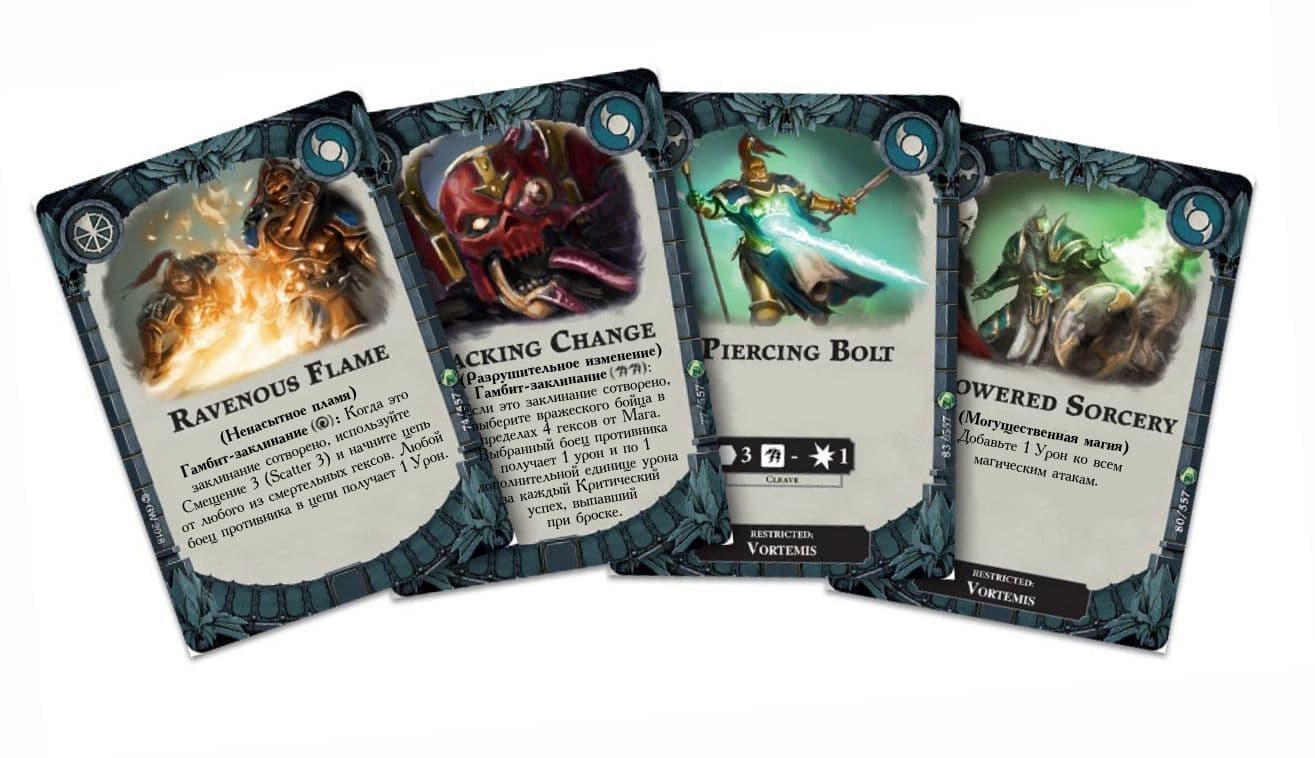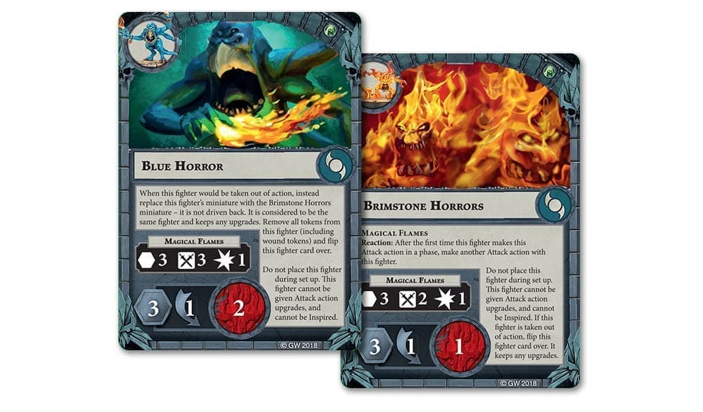 Глаза Девяти вводят в Warhammer Underworlds абсолютно новую механику, которая позволяет Вортемису призывать на поле боя Голубых Ужасов в любой момент игры. Эти парни (скорее уж твари) весьма полезны, когда надо захватить цель или поддержать вашего бойца во время атаки. Также ценно правило Голубого Ужаса, заменяющее модель демона Серными Ужасами после его смерти, что значительно усложняет противнику задачу по выбиванию вас с удерживаемых точек.