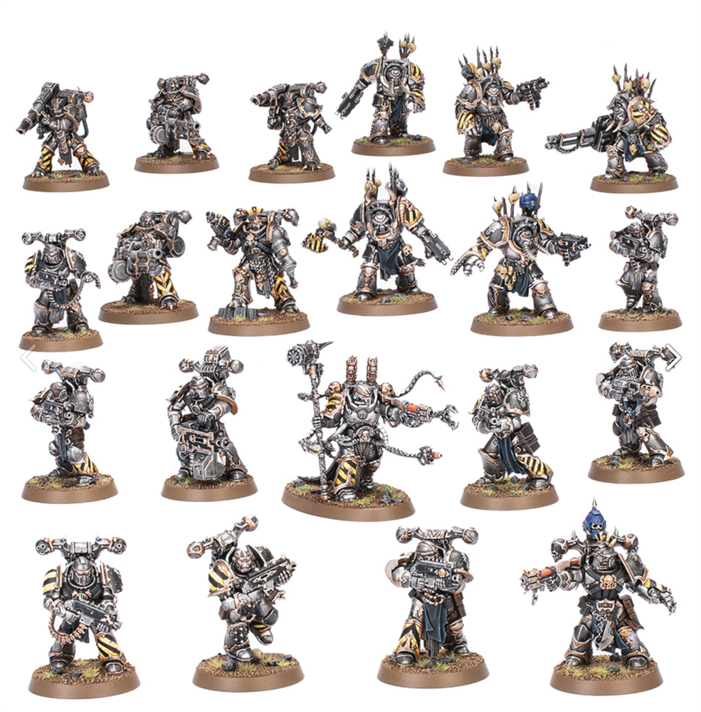 В отличие от своих вычурных сородичей, балующихся с варпом, Железные воины подходят к бою прагматично, полагаясь на природную стойкость и дисциплину, перемалывая противника в безжалостных лобовых атаках. Новый набор «Патруль» идеально подходит для воплощения их беспощадной тактики: в него входят пять терминаторов Хаоса, пять опустошителей, а также десять легионеров и варп-кузнец, что даёт возможность действовать как на дальних дистанциях, так и в ближнем бою.