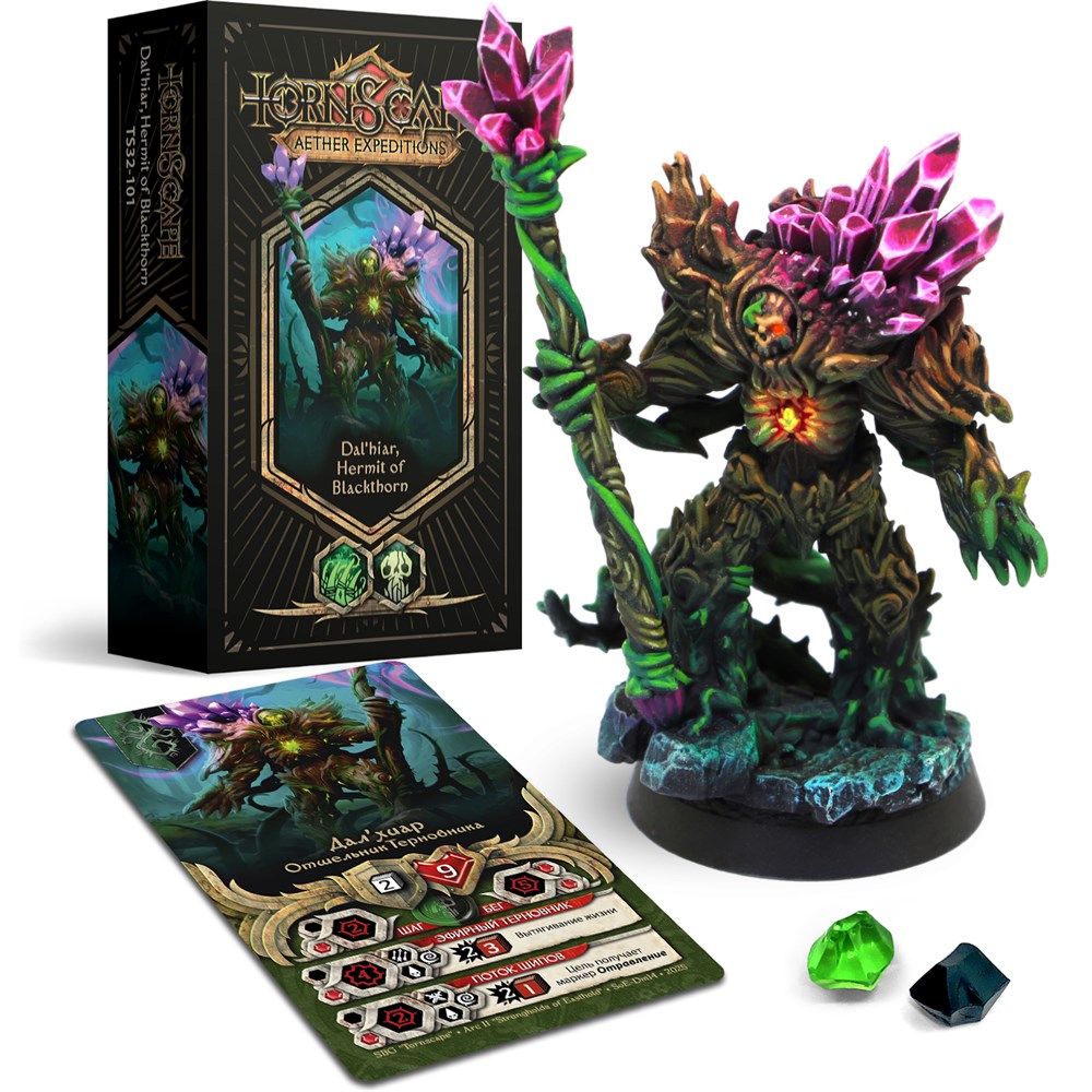 Миниатюра «Дал’хиар, Отшельник Терновника» для настольной игры Tornscape. Данный набор состоит из миниатюры, Карточки Миниатюры.