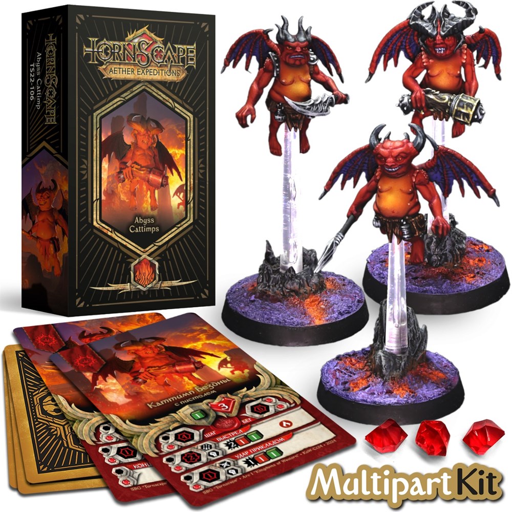 Миниатюра «Каттимпы Бездны» для настольной игры Tornscape. Данный набор состоит из деталей для сборки 3 миниатюр, 32мм Подставок, Карточек Миниатюр.