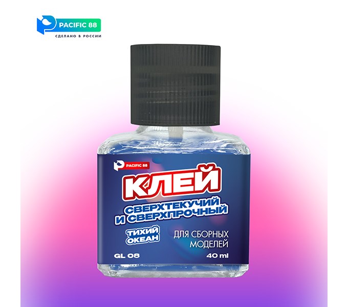 - 1х Клей для моделей фирменный сверхтекучий и сверхпрочный (Pacific88 Deep Ocean), 40 мл, стекло+кисть, Pacific88 GL08