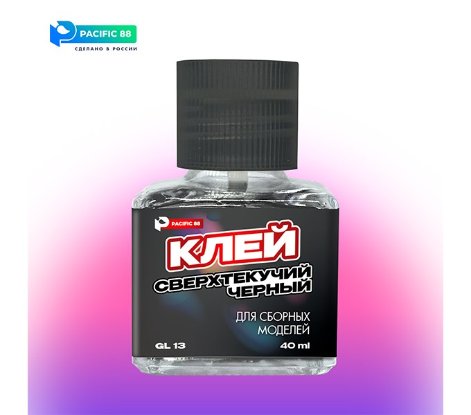 - 1х Клей для моделей сверхтекучий черный 40 мл, стекло+кисть, Pacific88 GL13