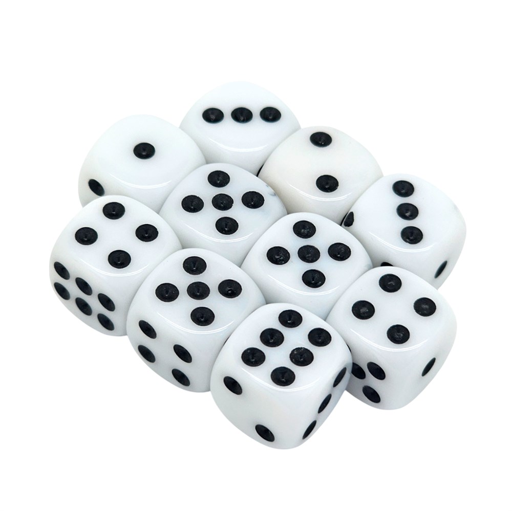 КУБИКИ Д6 12ММ 10ШТ. БЕЛЫЕ С ЗАКРУГЛЁННЫМИ УГЛАМИ