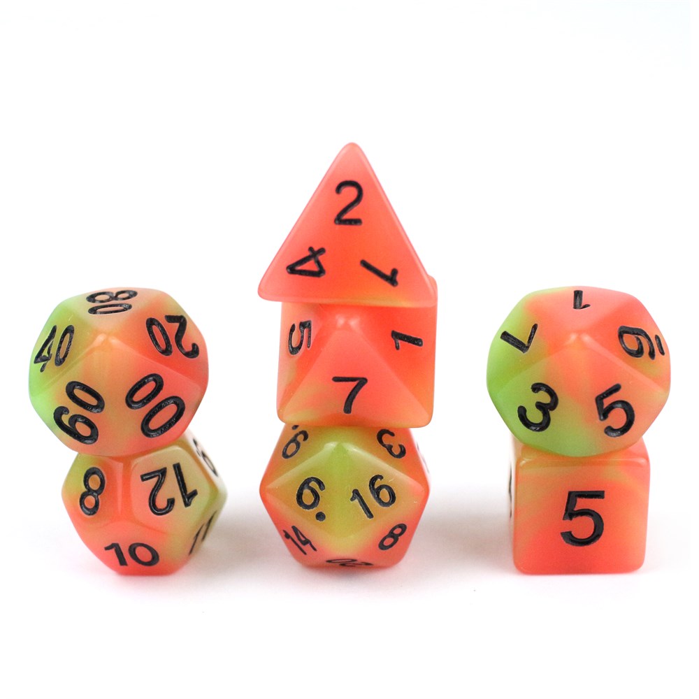 Кубики ДнД (7 шт) / Дайсы для DnD / Dungeons & Dragons / RPG / Тропический микс Зелено-оранжевый