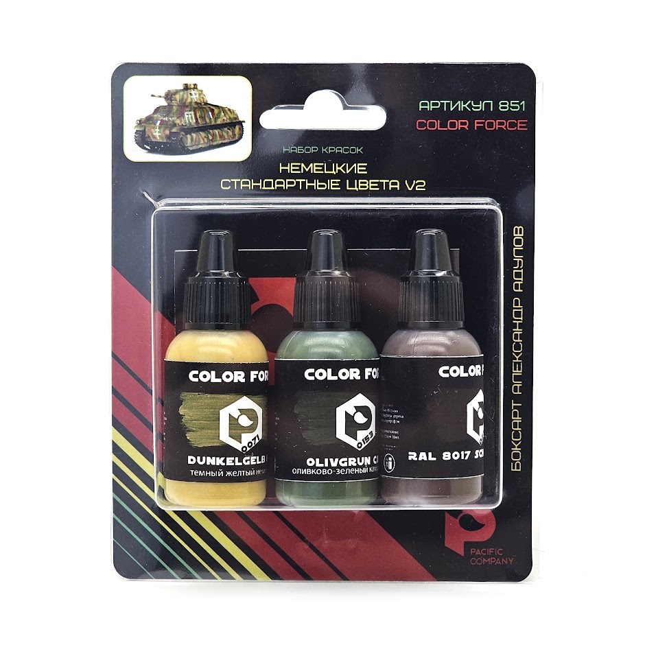 Pacific88 Набор красок для работы с аэрографом AERO Немецкие стандартные цвета V2 (0071, 0153, 0273), 3шт