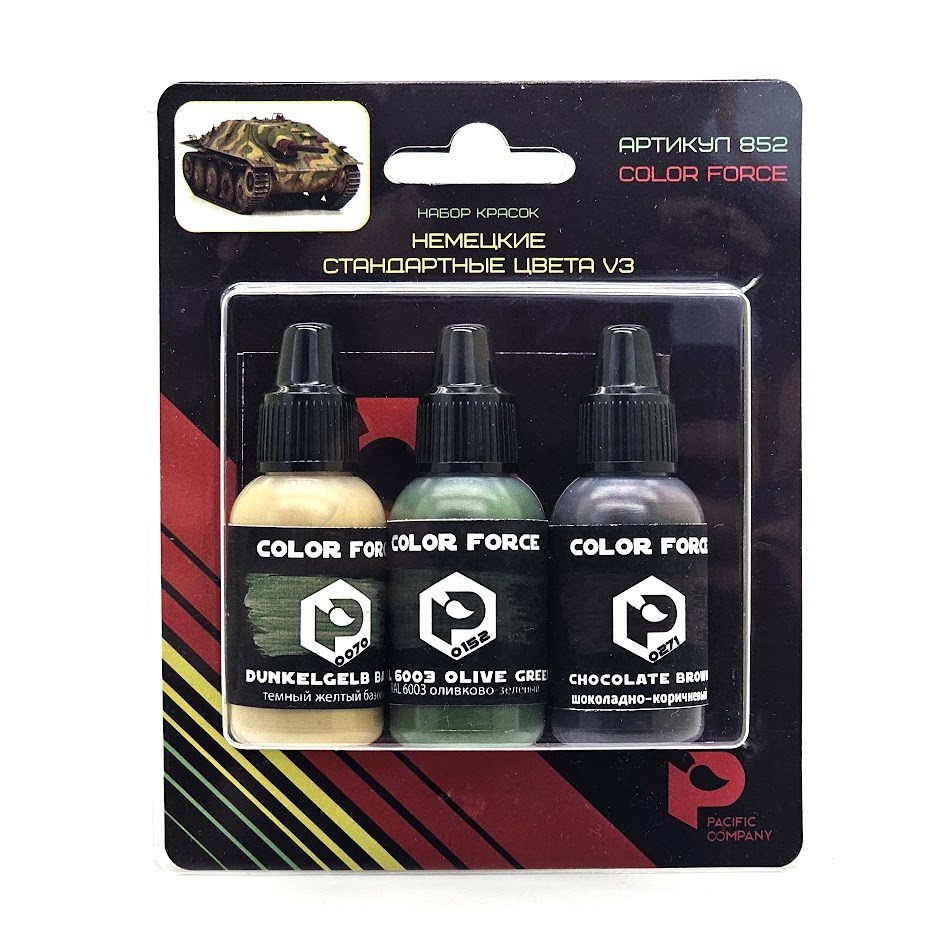Pacific88 Набор красок для работы с аэрографом AERO Немецкие стандартные цвета V3 (0070, 0152, 0271),3шт