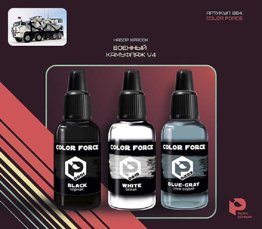 Набор красок AERO Военный камуфляж V4 (0001, 0015, 0223), 3шт., арт.884 Pacific