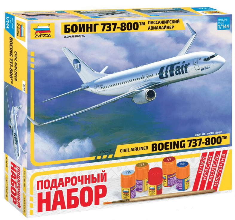 Пасс. авиалайнер Боинг 737-800 1:144 Подарочный набор Звезда 7019П
