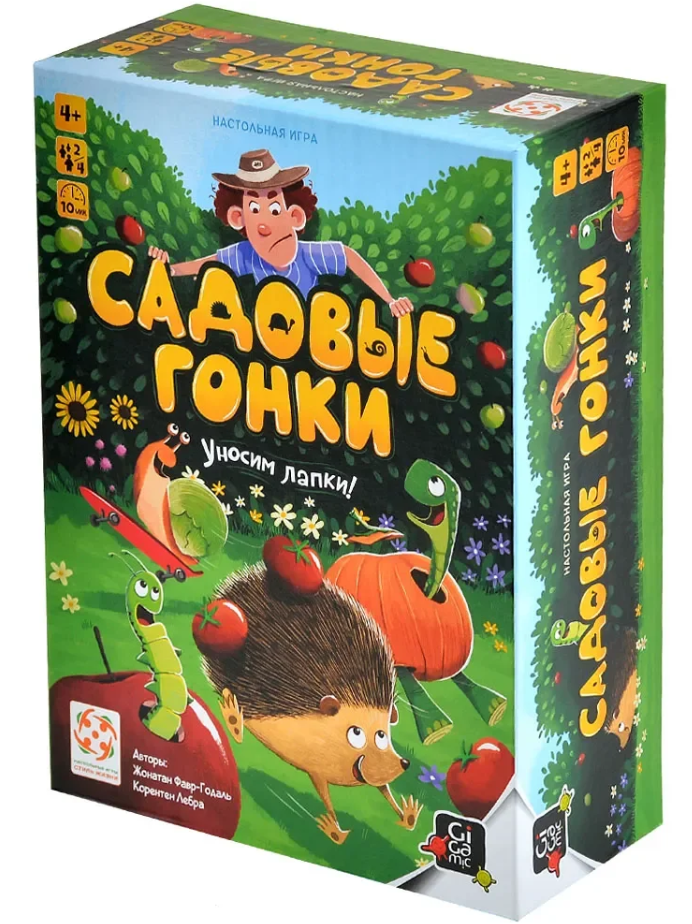 "Садовые гонки" – очаровательная детская игра с непредсказуемым финалом. В основе классическая гонка: двигаем фигурки вперёд-назад и стремимся дойти до финиша именно своей зверушкой. Но тактический интерес в том, что кубики определяют ход не только вашего подопечного (жетон которого вы вытягиваете в начале игры), но и остальных зверей! Иногда вы сможете сделать выбор в пользу своего, допустим, ёжика. Но порой придётся подвинуть вперёд и чужую черепашку. На поле всегда соревнуются четыре зверушки, так что исход гонки будет держать в напряжении до конца партии! Игра заканчивается, как только любая фишка достигнет калитки. Игрок, который в самом начале вытянул то животное, которое успешно дошло до финиша, побеждает. Если же такого игрока нет, то как всегда – побеждает дружба и спортивный интерес.