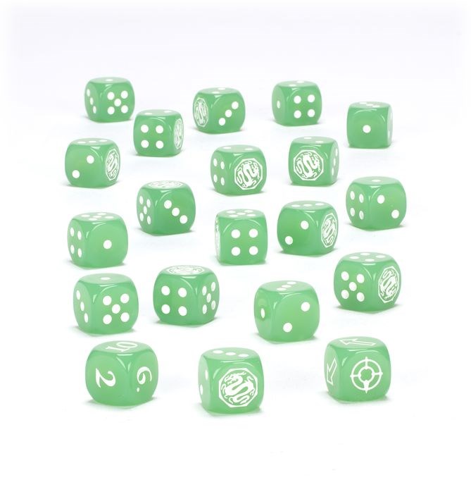 Хотя армии Великого Катая сражаются с достойной восхищения дисциплиной, мастерством и отвагой, их по-настоящему выделяют среди других владение стихиями ветра и верность Небесному Дракону. Это набор из 20 шестигранных кубиков с закруглёнными краями для использования в играх Warhammer: «Старый Свет», посвящённых армиям Великого Катая. Они отлиты из нефритово-зелёного акрилового пластика с белыми чернильными точками и узорами, а их размер по каждому ребру составляет 16 мм. На стандартных кубиках D6 точки традиционно нанесены на грани с цифрами от 1 до 5, а каждая грань с цифрой «6» украшена драконьим символом Великого Катая.